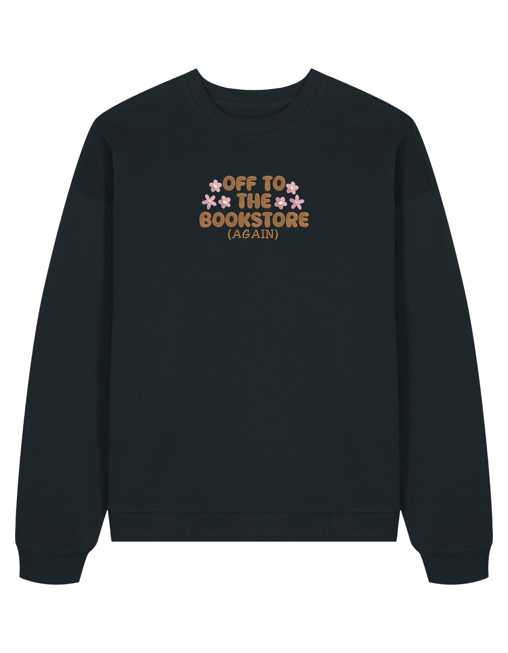 Sweatshirt brodat – „off to the bookstore”