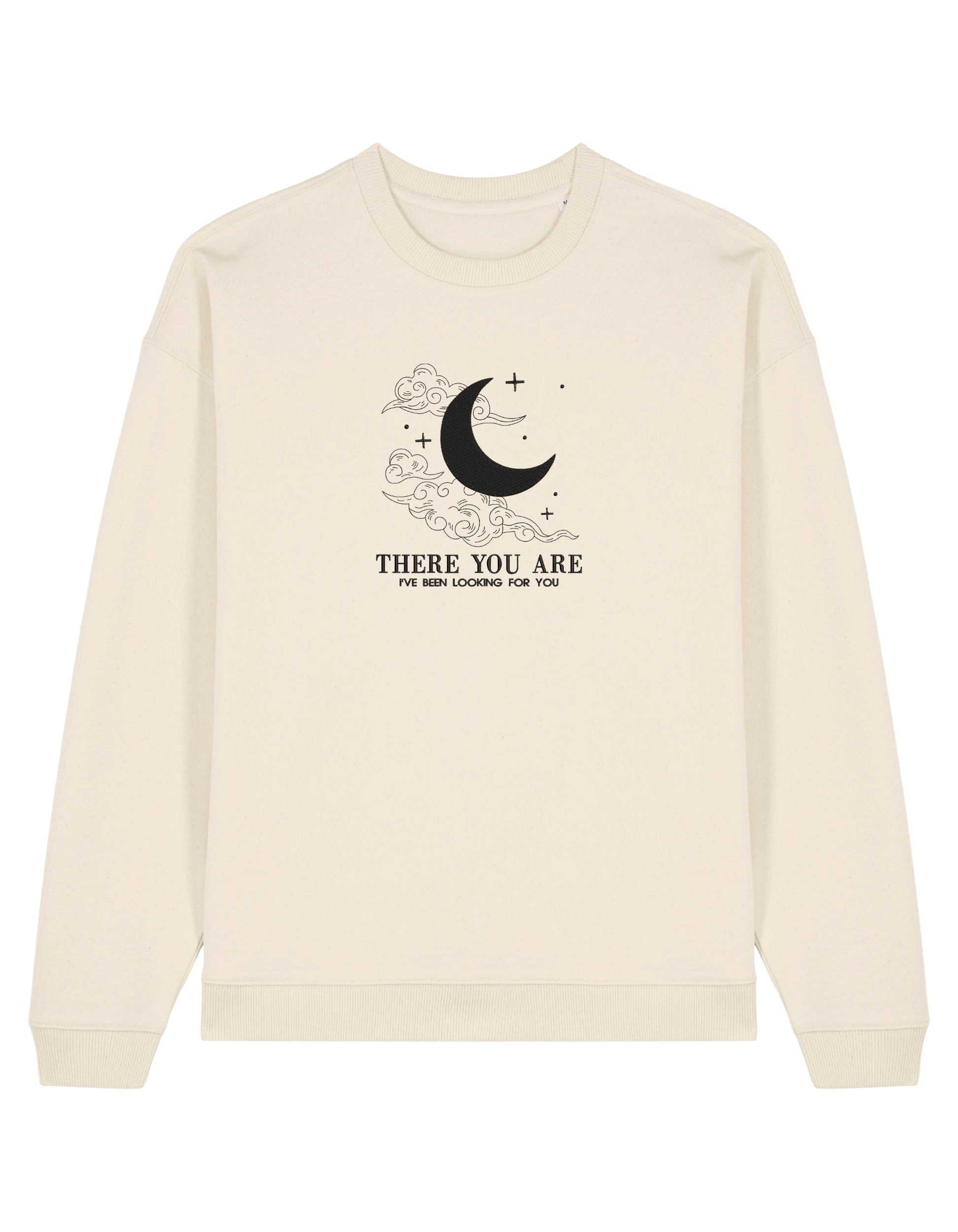 Sweatshirt cozy și brodat cu mesajul “There you are, I’ve been looking for you” – alegerea perfectă pentru cei care au suspinat, zâmbit și pus pauză în lectură doar ca să-și tragă sufletul după scena aia.